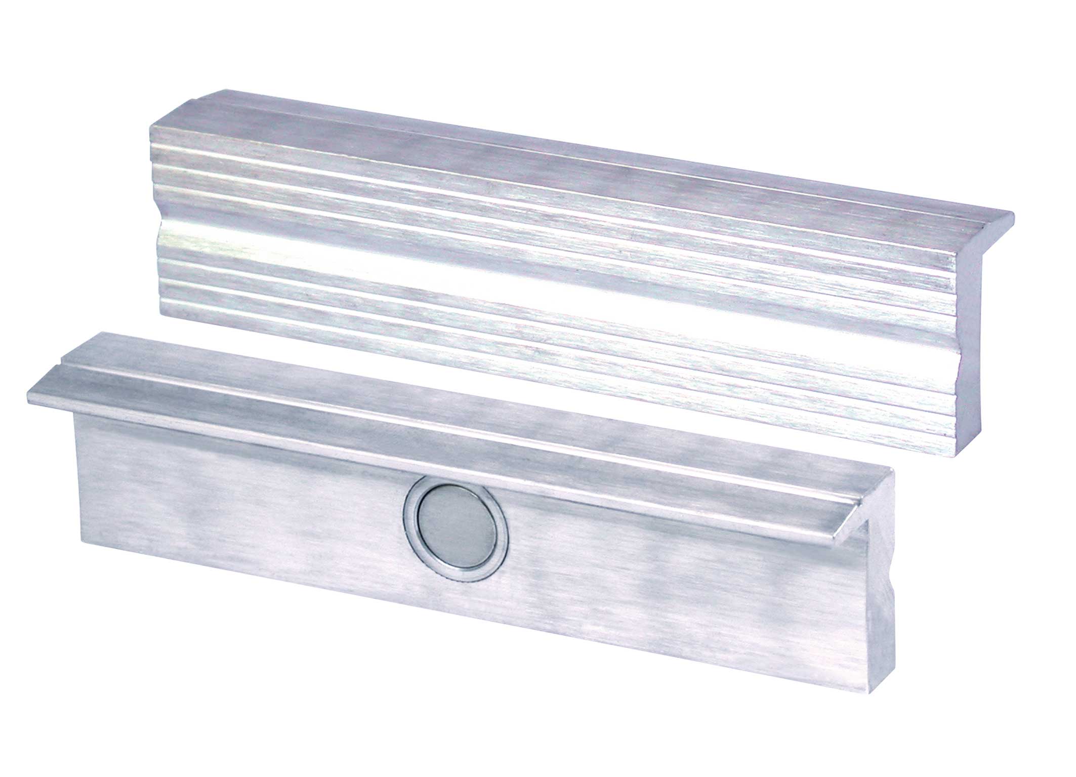 Spannen von grob bis mittelfein bearbeiteten Werkstücken. Die Backen sind aus Aluminium in der Härte zwischen Kupfer und Blei. 6 Rillen halten das Werkstück sicher fest. Eine tiefere Rille dient zum sicheren Spannen von dünnen Wellen, Stiften usw.