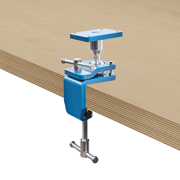 The HEUER ball clamp offers a swivelling range of up to 45° in all directions and can be easily attached without drilling. The safety clamp lever locks the clamp securely in any position. It can be mounted and dismantled in just a few simple steps, and the strong clamp spindle and the proven HEUER key guarantee simple and safe operation. A versatile addition to the workbench for special machining angles with the HEUER 100 vice or the HEUER Compact.